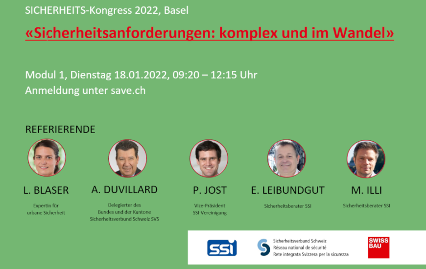 Im Januar 2022 treffen sich Sicherheitsfachleute in Basel zum Informationsaustausch. In total 7 Halbtages-Modulen werden Themen der Sicherheit angesprochen und behandelt.
