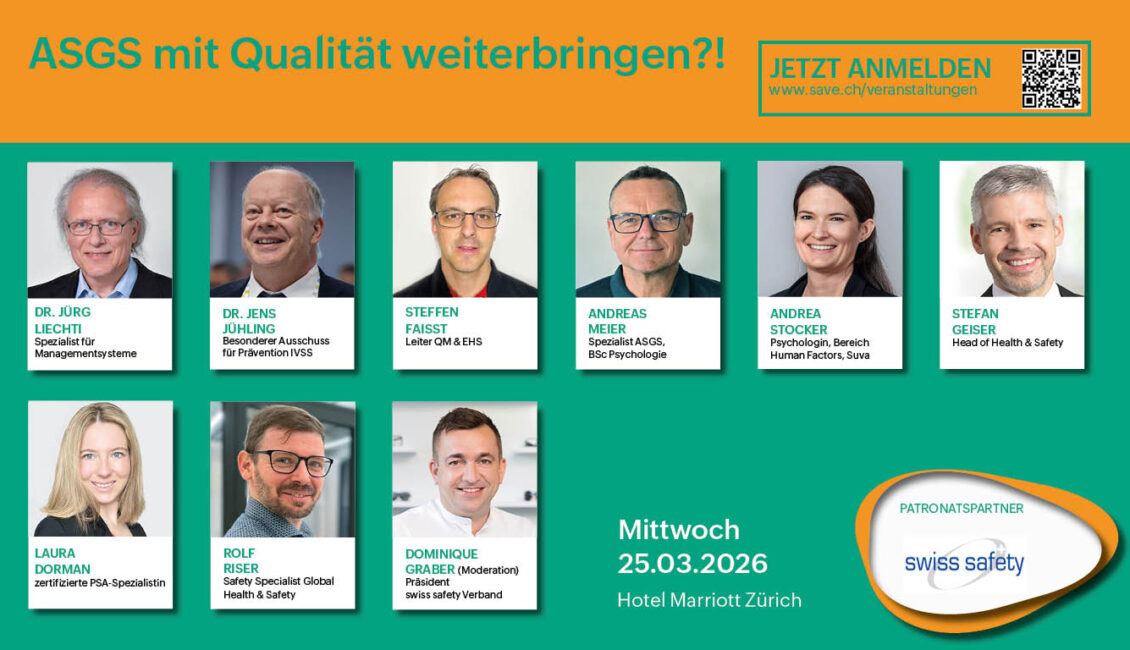 Die Fachtagung «ASGS mit Qualität weiterbringen?!» vom 25. März 2026 widmet sich der Frage, wie der Schritt von der reinen Pflichterfüllung zur hochwertigen Umsetzung von ASGS in der Praxis gelingt – und wie Qualität als Motor für sichere und leistungsfähige Arbeitsplätze wirkt.