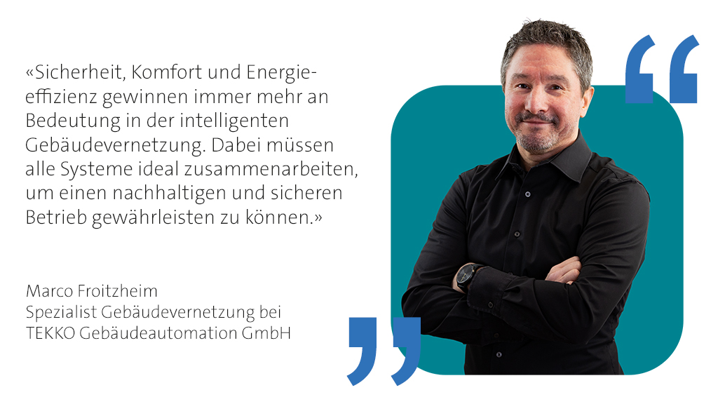 Marco Froitzheim, Spezialist Gebäudevernetzung bei TEKKO Gebäudeautomation GmbH, wird uns in seinem Referat «Hohe Ansprüche ans Gebäude: sicher, smart, energieeffizient, intelligent» zu folgenden Themen spannende Einblicke geben: