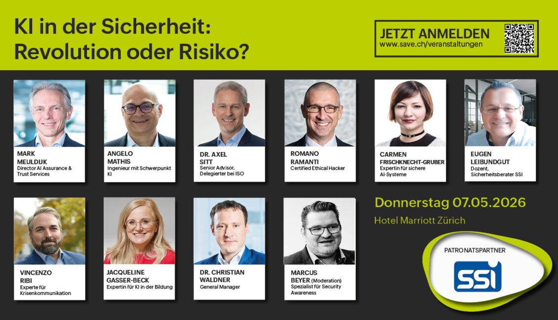 Diesen Fragen widmet sich die Tagung «KI in der Sicherheit: Revolution oder Risiko?» am Donnerstag, 07.05.2026 im Zürich Marriott Hotel. Im Zentrum stehen aktuelle Entwicklungen, praxisnahe Use Cases sowie der verantwortungsvolle Einsatz von KI im Spannungsfeld zwischen Innovation, Governance und Kontrolle.