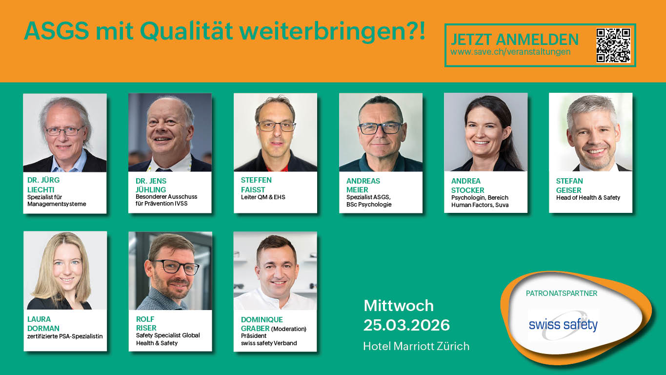 Arbeitssicherheit und Gesundheitsschutz sind zentrale Bestandteile moderner Unternehmensführung. Trotz etablierter Managementsysteme, Kennzahlen und Audits zeigt sich in der Praxis immer wieder: Nachhaltige Verbesserungen entstehen nicht allein durch Strukturen, sondern durch gelebte Verantwortung, wirksame Prävention und eine starke Sicherheitskultur. Genau hier setzt die Fachtagung «ASGS mit Qualität weiterbringen?!» an, die am Mittwoch, 25. März, im Zürich Marriott Hotel stattfindet.