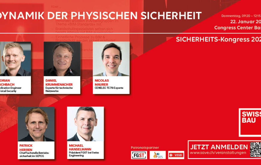 Wo Sicherheit besprochen und transferiert wird! Vom 21. bis 22. Januar 2026 findet parallel zur Messe Swissbau erneut der renommierte SICHERHEITS-Kongress statt.