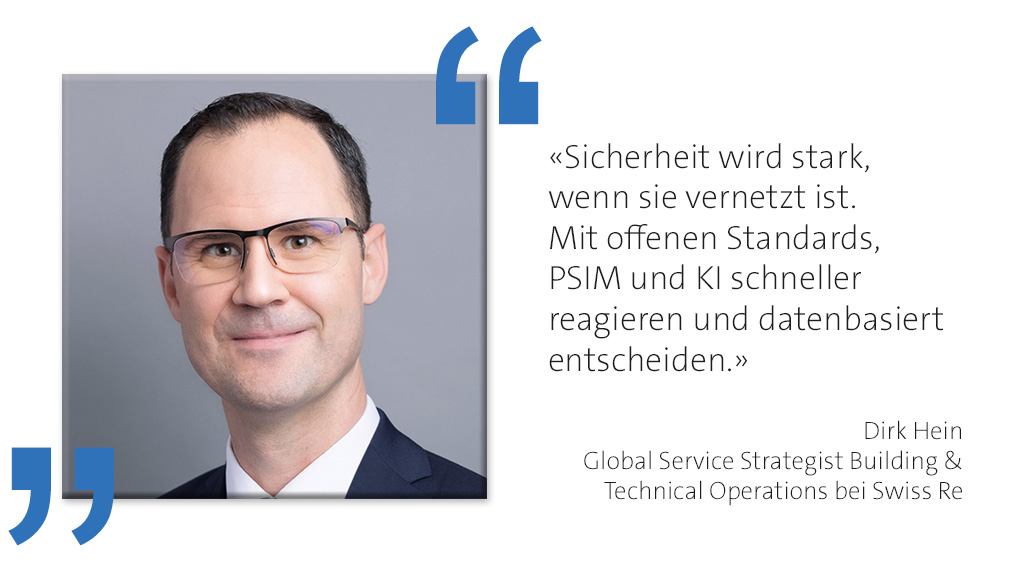 Als Service Strategist Building & Technical Operations bei Swiss Re vermittelt Dirk Hein in seinem Referat «Zukunft sichern – wie moderne Technologien unsere physische Sicherheit neu definieren» wertvolle Einblicke in folgende Themen: